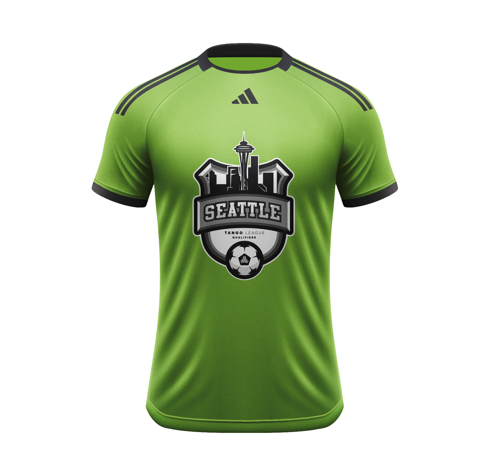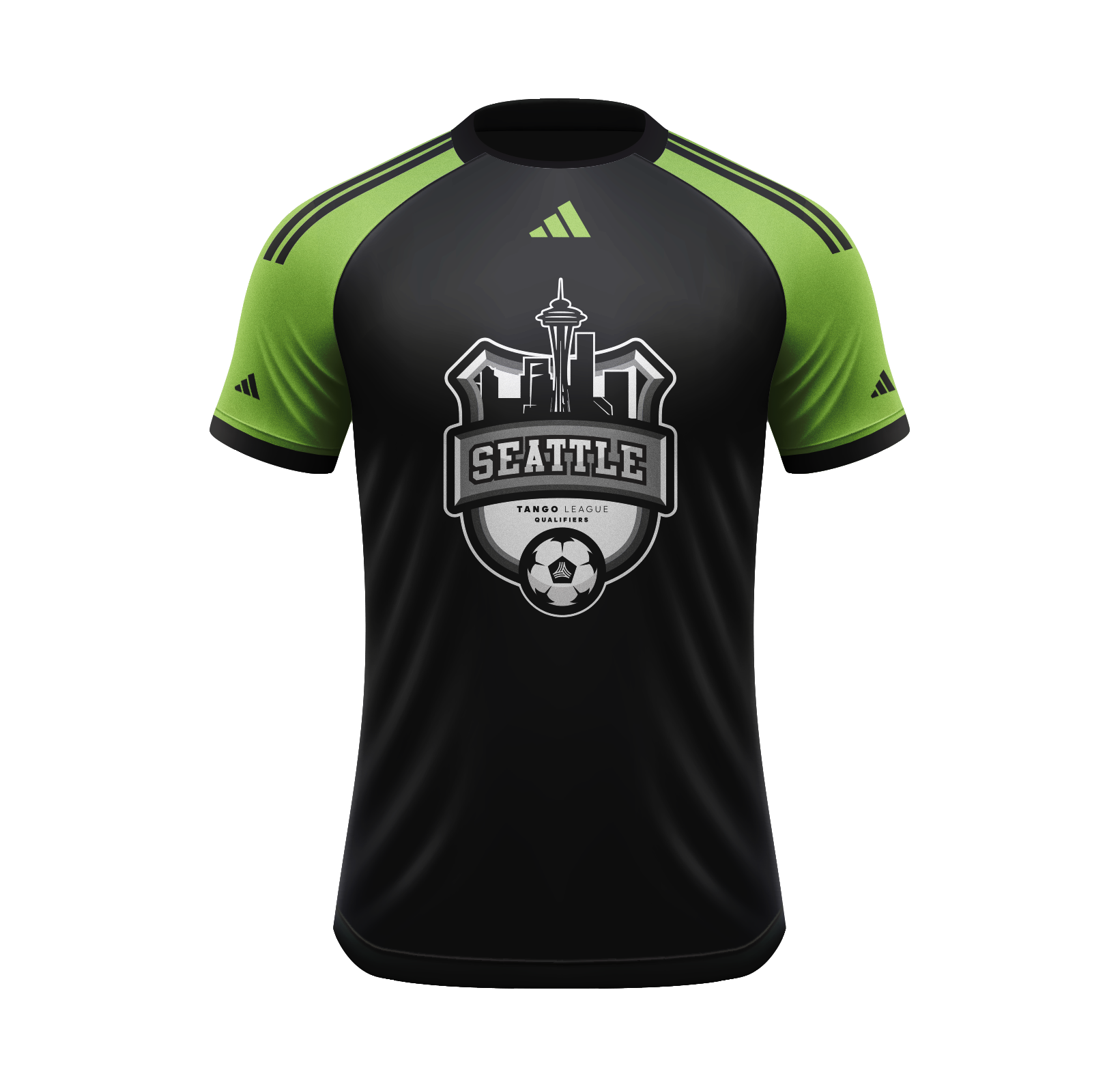 The final jersey designs present a cohesive visual system that reflects both the competitive spirit of the Tango tournament and the regional character of the Seattle soccer community. By pairing heritage‑inspired references with a restrained, contemporary graphic approach, the designs feel familiar without being derivative.