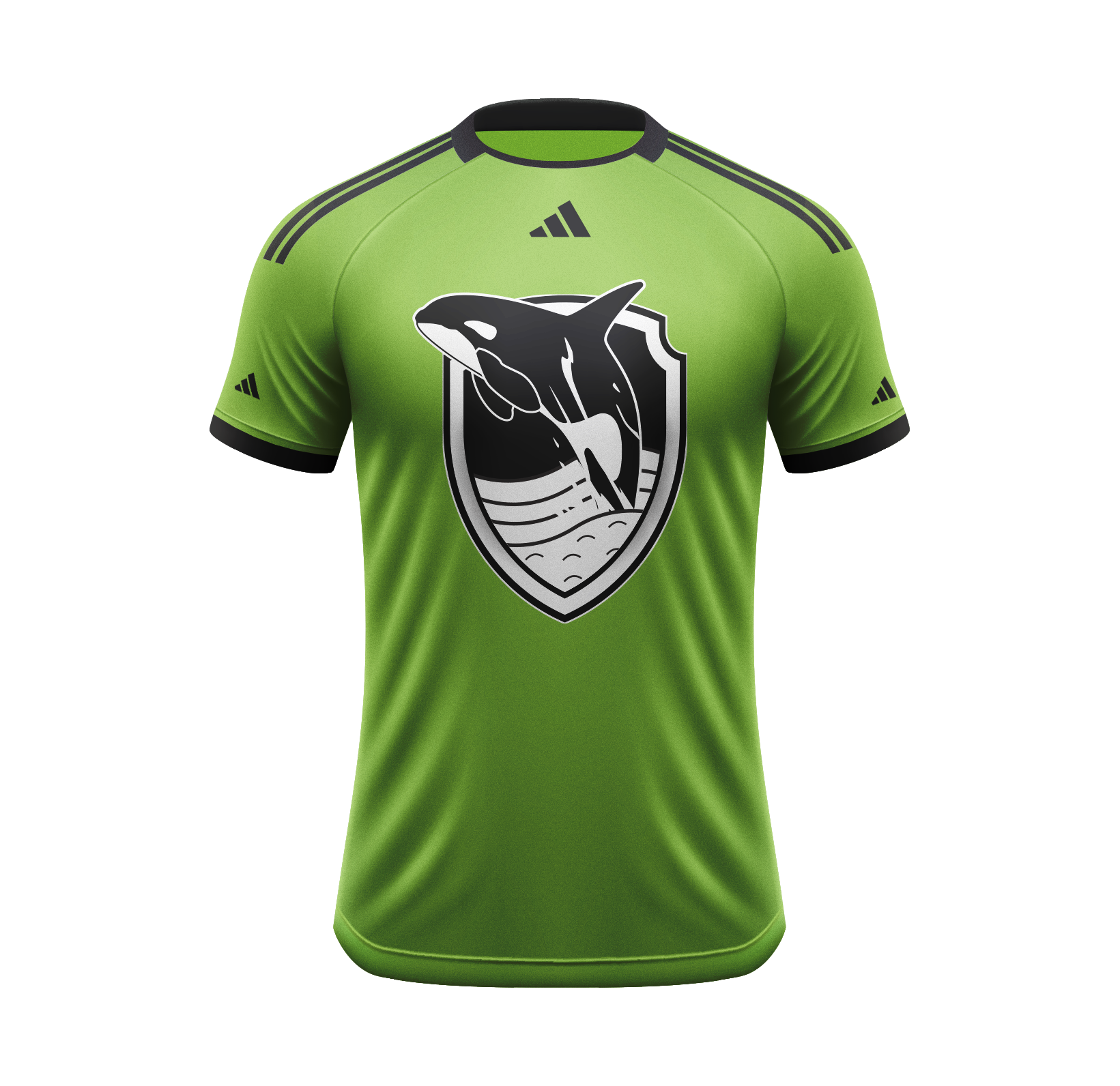 I was contracted to design a series of tournament jerseys for the Seattle‑area regional qualifier of the Adidas Tango soccer tournament series. The goal was to create designs that honored the heritage of the Pacific Northwest while maintaining a contemporary, updated approach to Adidas’ shield‑style logo language.